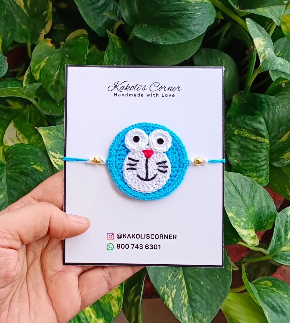Introducing our Handmade Crochet Doraemon Rakhis – the perfect way to celebrate the festival of Raksha Bandhan in India!